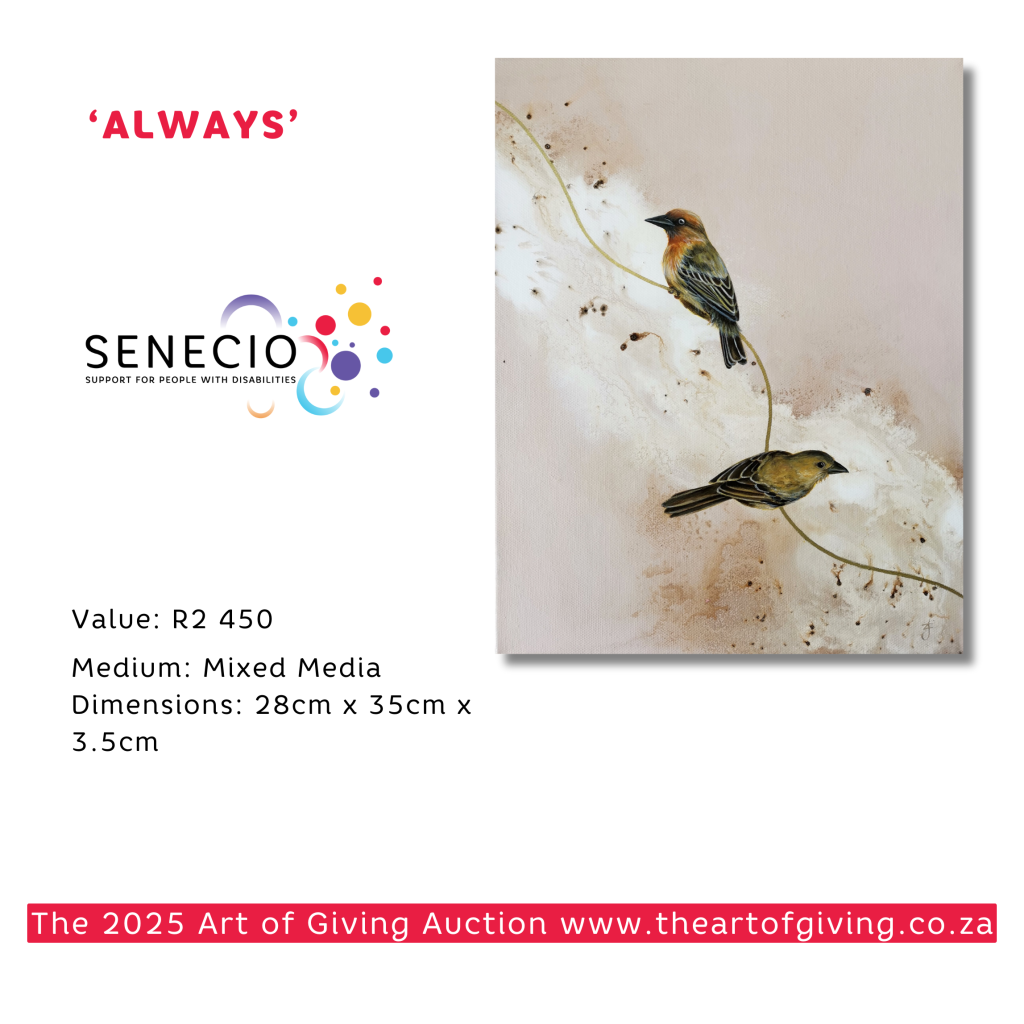 Every bid supports Senecio’s mission to improve the lives of adults with disabilities in the Western Cape region. This event is more than art; it’s a catalyst for inclusion, dignity, and lasting impact.